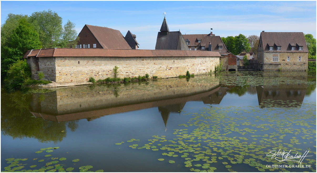 Burg Kakesbeck liegt an der Stever im Norden Lüdinghausens. Im schönen Lüdinghausen im Münsterland sind drei Wasserburgen erhalten: neben der weithin bekannten Burg Vischering sind da noch Burg Lüdinghausen und Burg Kakesbeck, die älteste der drei Anlagen. Kakesbeck wurde im neunten Jahrhundert erstmalig in den Urbarien des Klosters Werden an der Ruhr erwähnt, die ursprünglichen Besitzer nannten sich von Kakaresbeki. 1120 wurde an der Stelle der heutigen Hauptburg eine Motte errichtet. Eine Motte oder Turmhügelburg ist ein in Holzbauweise auf einem künstlich angelegten Erdhügel errichteter befestigter Turm.